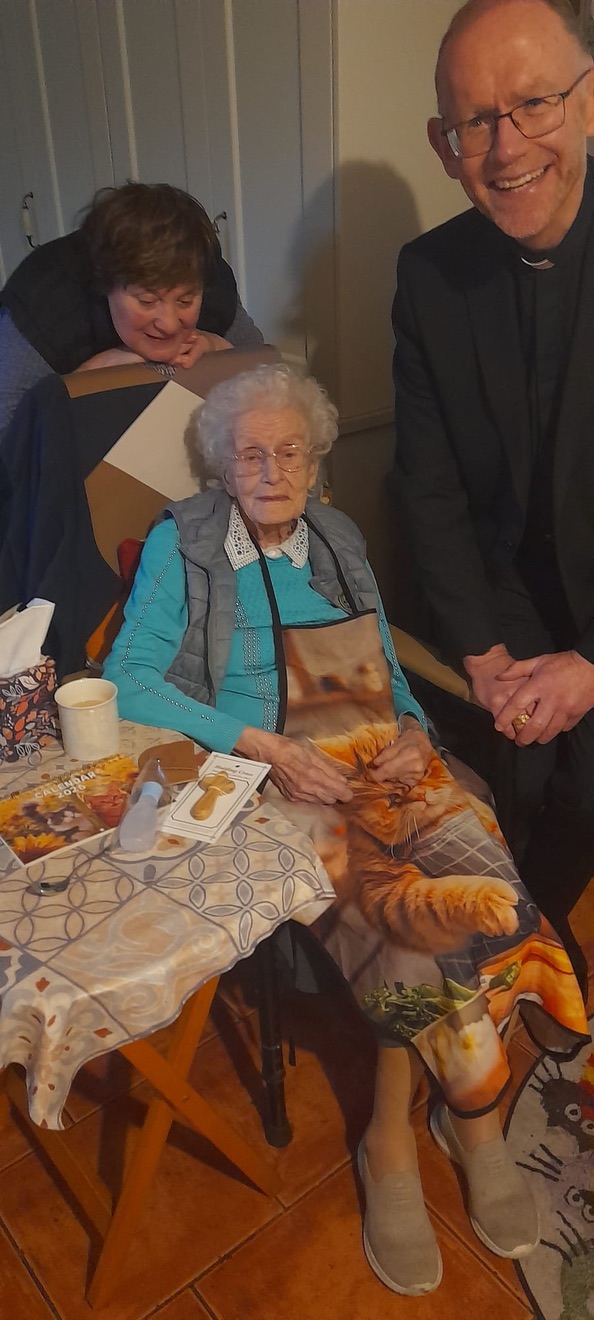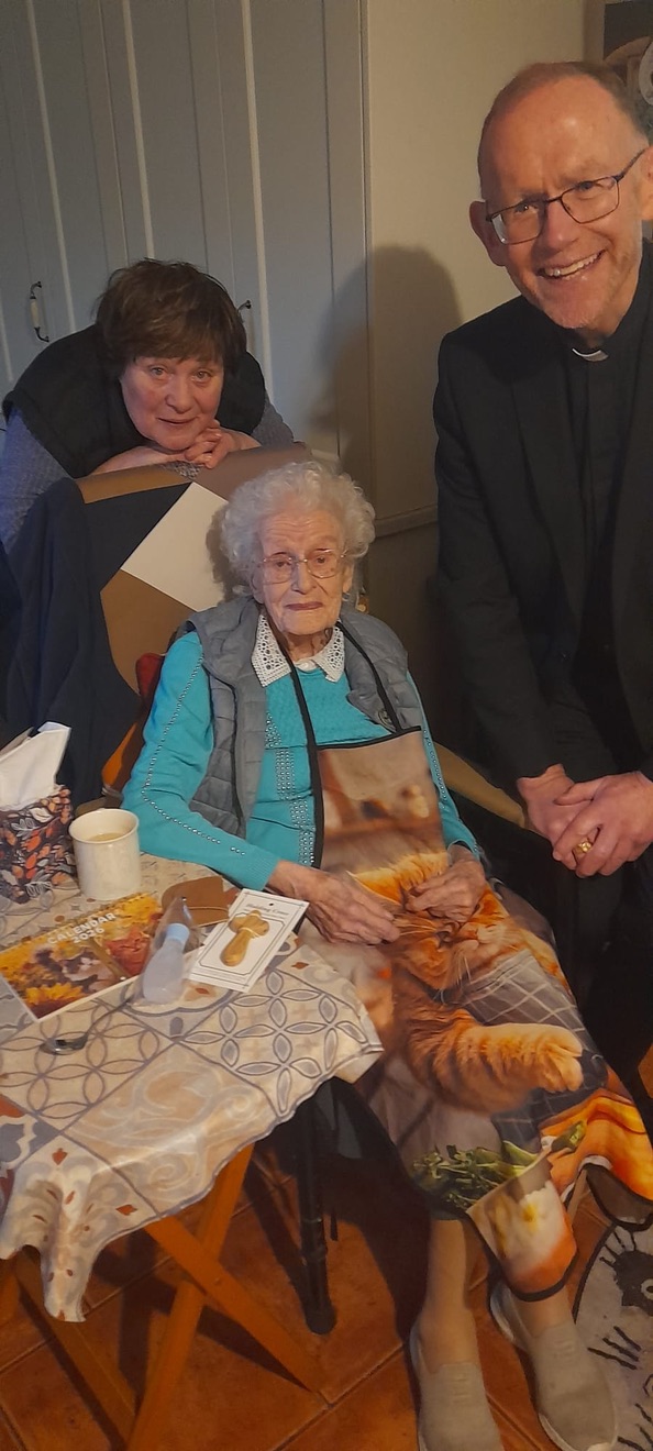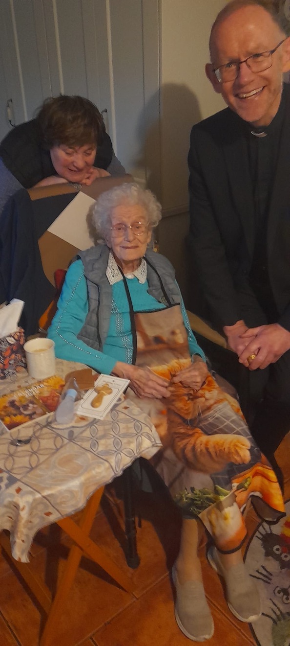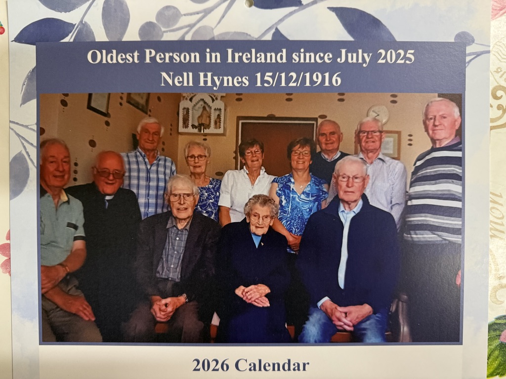 Congratulations and blessings to Nell Hynes (109), Ireland’s oldest citizen and her neighbour Maureen Hanley (101) both from Kilcolman – Coolderry Parish in Co. Offaly. Thanks to Fr. Tom Hogan for the photographs and Maureen’s daughter, Mary is also in the pictures.