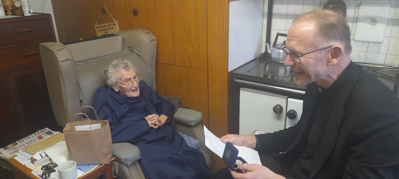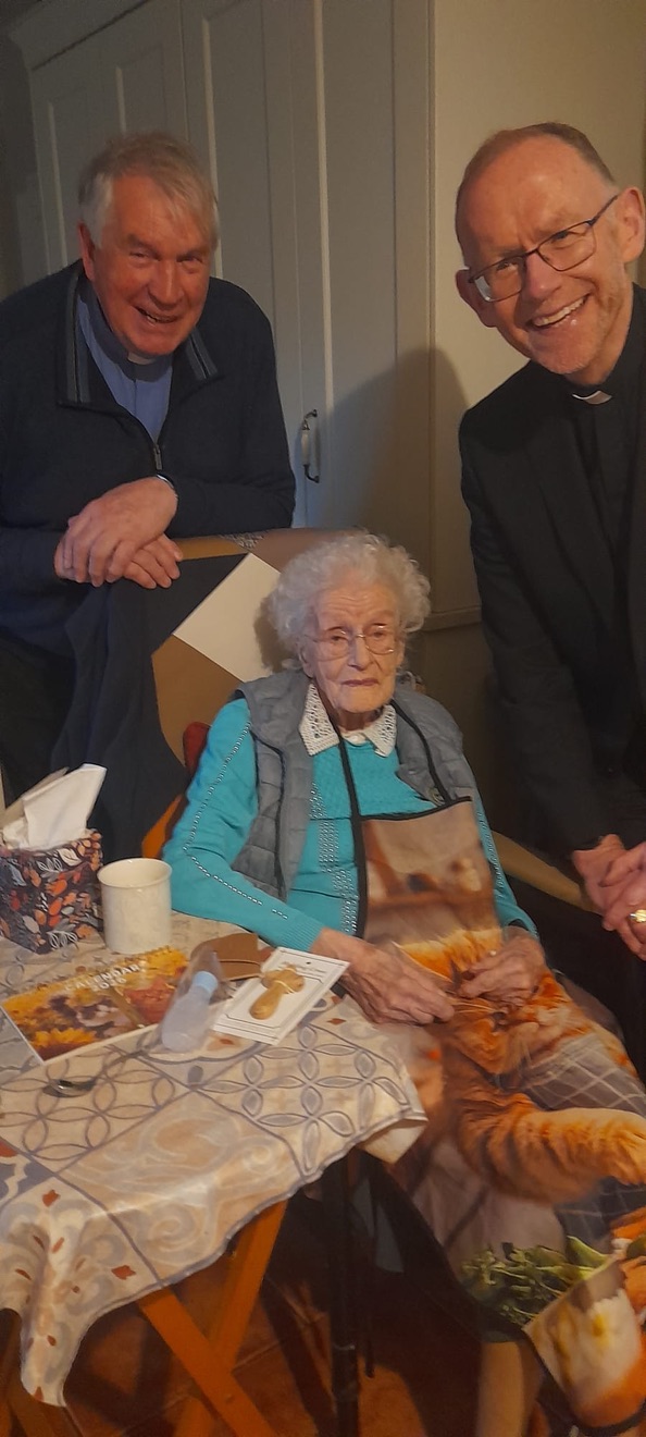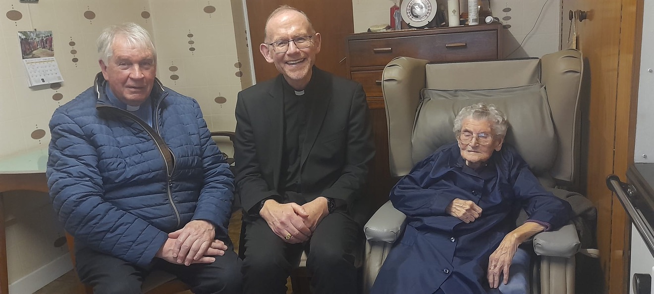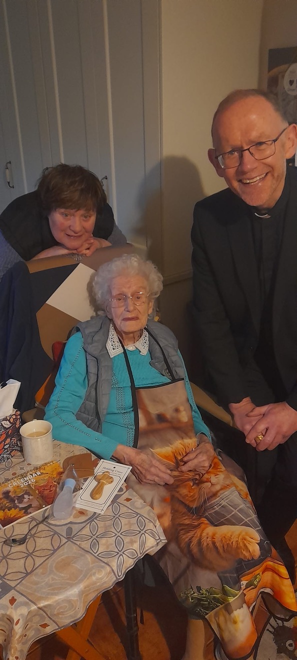 Congratulations and blessings to Nell Hynes (109), Ireland’s oldest citizen and her neighbour Maureen Hanley (101) both from Kilcolman – Coolderry Parish in Co. Offaly. Thanks to Fr. Tom Hogan for the photographs and Maureen’s daughter, Mary is also in the pictures.