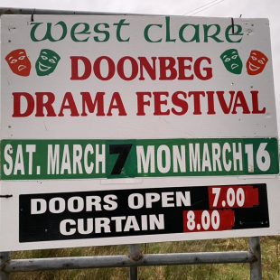 Since 1962 the West Clare Drama Festival has been a constant feature of the entertainment and social calendar of now generations of local people here in Doonbeg, people all over Co. Clare and the Western Seaboard and beyond. I love the picture on your website of the original committee of 1962 and also the one of the current committee at last years All Ireland finals. We remember with great fondness and sadness one of the founding members of the festival, Canon Pat Taafe of Tubber who was buried during the week. He was a great community man here for many years in Doonbeg and we pray the light of heaven on him this evening.