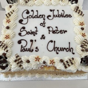 I warmly congratulate all who have been part of the story of Sts Peter and Paul Church over the past 50 years in so many roles. May God reward each and every one for their labours as we celebrate and fete that on this jubilee occasion on the Mission Sunday. May this sacred space continue to be special place in the town and pastoral area of Cois Deirge for many years to come.