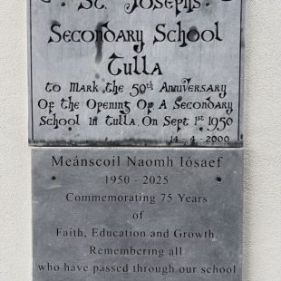Speaking of hope – just imagine back to 75 years ago to the small group of enthusiastic, dedicated, brave, visionary Mercy sisters and close local collaborators and teachers who started up this school here in in the wind swept hill of Tulla. Cnoc na Gaoithe!