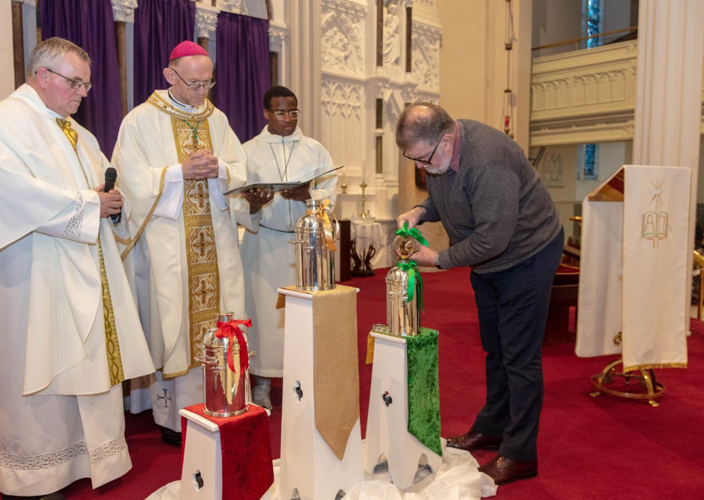 Tonight is a moment of unity. From this cathedral, the oils will be taken to every parish and community of our diocese. In this way, the sacramental life of each local church flows from and returns to this altar. We are one body in Christ. The same oil consecrated here will sanctify in every corner of our diocese. The same Spirit who descended upon Christ in the Jordan continues to descend upon his people.