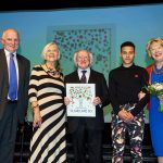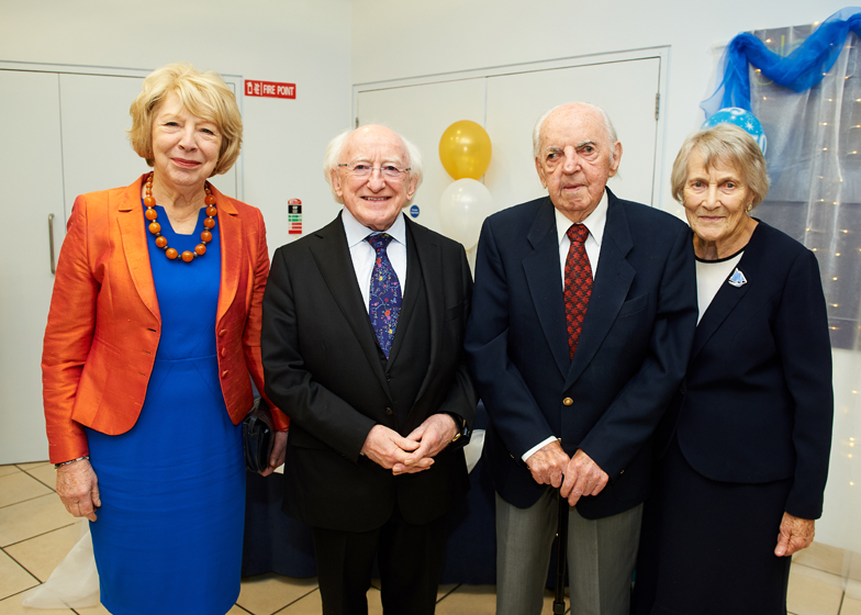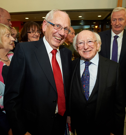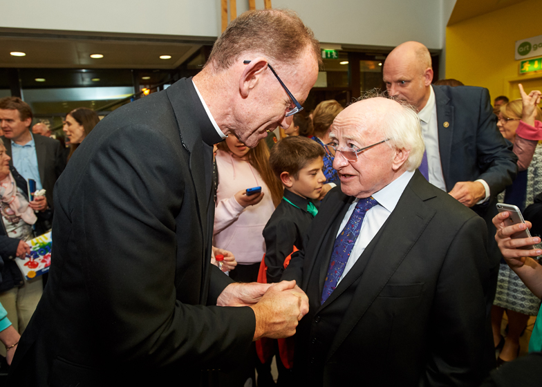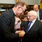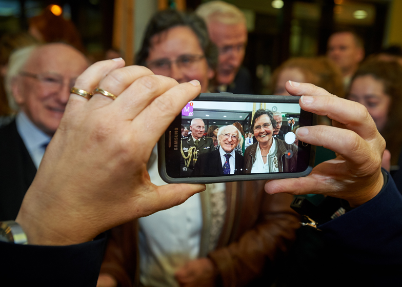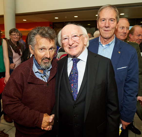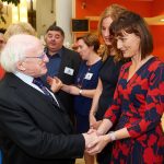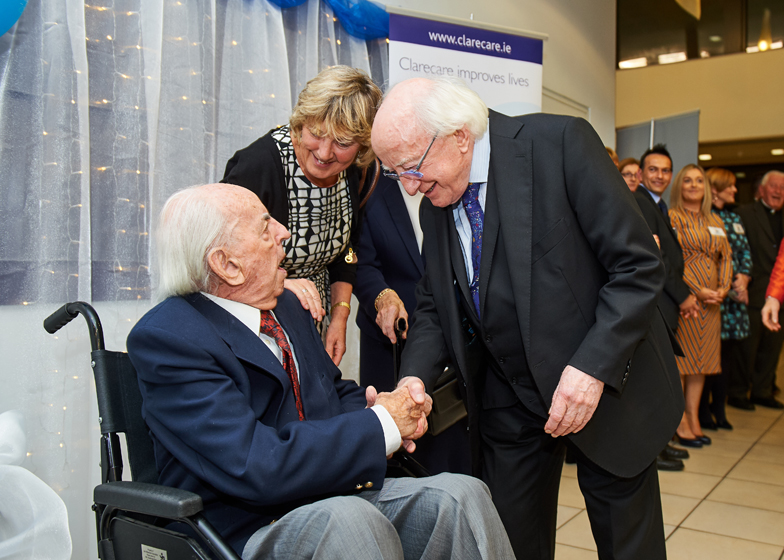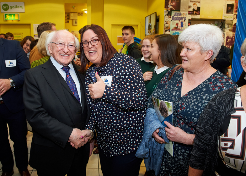- Homework Club Volunteer Mary O Halloran gets her picture taken with President Michael D. Higgins at the Clarecare fiftieth anniversary celebrations in Glor, Ennis.