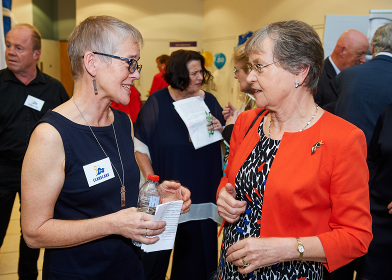 I have a little image that I use in my own work. I heard an expert on trees encouraging people to plant trees. He finished his talk with the phrase “There are two right times to plant a tree, one is fifty years ago and the other is today”. That story carries a message that is deeper than planting trees. It reminds us that when we lament what might have been done, we are powerless but when we recognise that in our present moment of life and exactly as we are now we are in the best place to begin a new adventure. When County Manager Joe Boland, whom we are truly honoured to have with us this evening and the late Bishop Michael Harty put their heads together over 50 years ago, they were not looking backward or lamenting what had not been done in the past. They knew that they were living their “today” and if they did not plant, the opportunity would be lost. They planted and today many families and individuals in Clare rest in the renewing and restful shade of the mighty tree that Clarecare has become. They sowed the seed but quickly energy began to flow from around the County as people recognised that this organisation would draw from but also deepen and strengthen the sense of meitheal, the sense of cabhair – the great Irish words that were very much part of the vocabulary of this County 50 years ago. People came as local committee members, as members of the Board, as treasurers and secretaries, as home helps and foster parents and each brought their own skill and enthusiasm to the business of helping their neighbour. Their definition of neighbour was not geographical – the house next door, but spiritual – anybody who needs my help no matter where they live. Some gave month’s, some gave years and indeed there are people here who have been giving in each of the 5 decades that Clarecare has existed. Tonight we acknowledge their sowing and their tilling and on behalf of those who cannot, we say thank you. I want to acknowledge my predecessors as Managers or Directors as they were known then. Fr Brendan O’Donoghue who was delegated by Bishop Harty at the beginning, then Fr Brian Geoghegan who nurtured the organisation through its building years and Fr Pat Sexton who carried on the good work and established strong relationships with the growing state organisations in his time. We are delighted that all of them, in great health are here with us this evening. Many great public servants worked closely with Clarecare down the years and continue to do so in a very productive relationship for the people of Clare. In particular, I want to acknowledge the work of Jackie Browne who was the key person for many years in Clarecare’s relationship with the Mid Western Health Board and later the HSE.