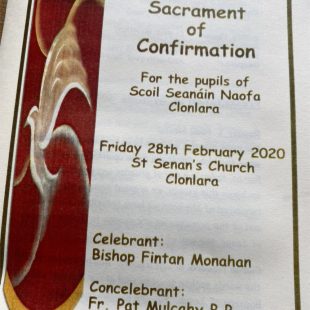 Congrats to all involved in Confirmation in Clonlara Church on Friday, 28th of February 2020