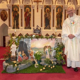 I recall 4 years ago during Covid when restrictions were all round – a group of creative, pastoral and prayerful people put together stations of the cross in the shop windows of the town all the way from the Poor Clares to here.  The 14 traditional stations were included but an extra number 15 was added to signify the Resurrection.