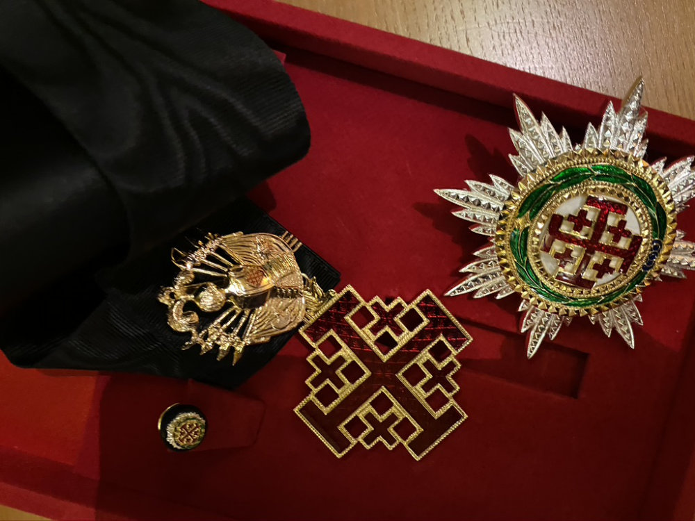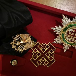 I enjoy the ancient tradition of Heraldry and Mottos and appreciate the Coat of arms of the order attributed to the Kingdom of Jerusalem with the simple but profound symbol of the Cross and the signification of the five wounds of Jesus Christ. I further appreciate the seal of the order in the shape of an almond and portrays, within a frame of a crown of thorns, a representation of Christ rising from the Sepulchre. All very much capturing the Paschal Mystery that we focus on so deeply during these Lenten days in preparation for the celebration of Easter.