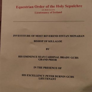 Knight of Holy Sepulchre – Address of Bishop Fintan Monahan- Old Ground Hotel, Ennis, Friday 28th of February 2020