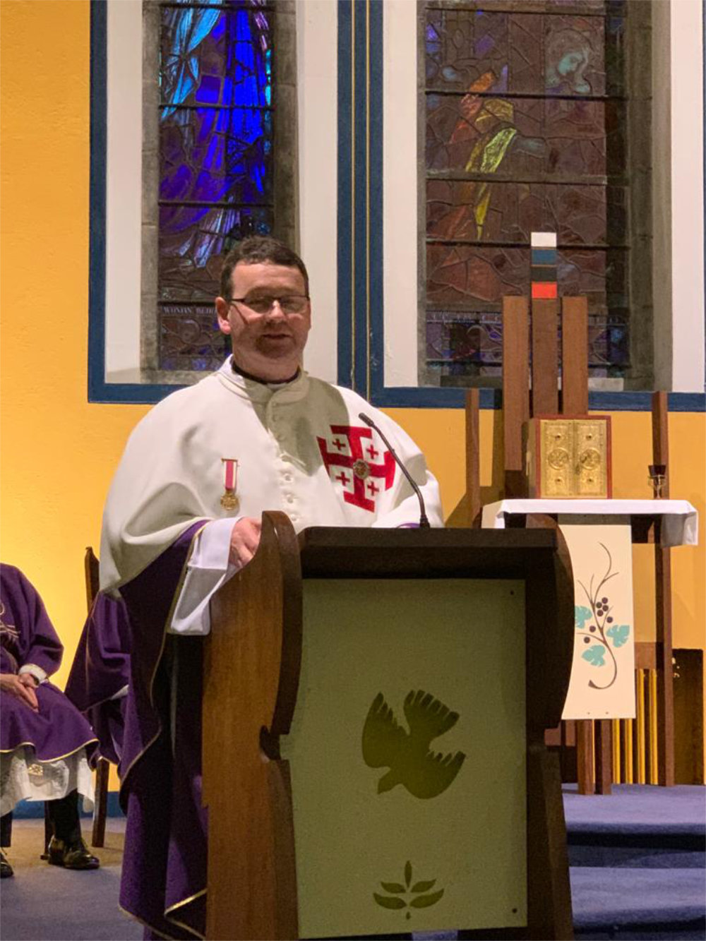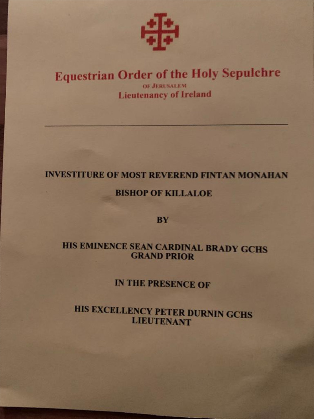 It is an honour and privilege for me to be invited to join the Knights of the Holy Sepulchre of Jerusalem and to mark it with this special evening here in Ennis with the liturgy in St. Flannan’s followed by table fellowship here in the Old Ground.