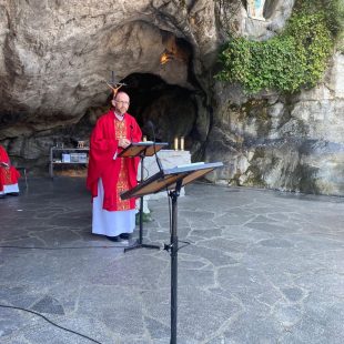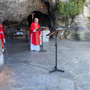 I welcome you all again as we continue our Pilgrimage to Our Lady’s Shrine at Lourdes in the 163rd anniversary of the Shrine. In welcoming all, I especially welcome the many pilgrims from Killaloe diocese who are here until Sunday next on the 64th annual diocesan Summer pilgrimage, with the Autumn one to follow in October. Fáilte Uí Cheallaigh romhaibh go dtí an áit naofa, speisialta seo, Scrín na Maighdinne Beannaithe agus Naomh Bernadette i Lourdes.