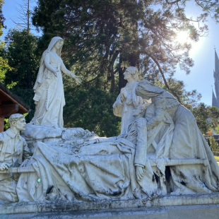 Whether this is your first time on Pilgrimage or whether you have been here many times before, you carry with you in your heart so many prayer intentions, so many cares, concerns and anxieties, joys, enthusiasms and hopes. Along with all that we spend time with the Lord and His blessed mother in prayer, in adoration, in thanksgiving, in worship – especially in the calm, sacredness, holiness and serenity of this special location the grotto of Our Lady and Bernadette.