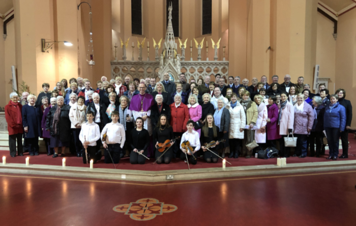 I’m very much aware of the keen interest in Killaloe diocese in liturgy and liturgical music going back to the time of Bishop Harty who had a special interest in matters liturgical and the legacy of that is still to be seen with the many excellent choirs in so many parts of the diocese. I see it first hand every year at Confirmation ceremonies, the length and breadth of the 58 parsishes from Kinnity to Loop Head. An outstanding example of it was the coming together of people from choirs all over the dicoese for my installation as Bishop of Killaloe, over two years ago. I remember for the end of The Year of Mercythe outstanding combined choir celebration in Mount St. Joseph’s at the end of 2016, on this very feast, Christ the King. The combined choirs again beautified the liturgy at Abbot Richard’s installation in Mountmellery and it was a proud moment for the dicoese when they sang for Pope Francis in Knock this August. This year I had the joy of being at the combined charity choir concert under the baton of Noreen Spain in St. Mary’s in Nenagh for Fr. Peter McVerry’s charity and one would stand in the snow being transported into the spiritual realm with the outstanding sacred music there.