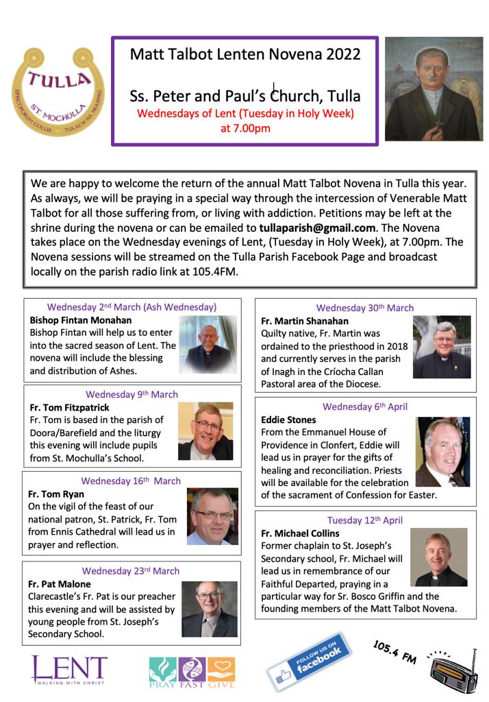 Welcome to join in the prayers during Lent for the Matt Talbot Novena in Tulla