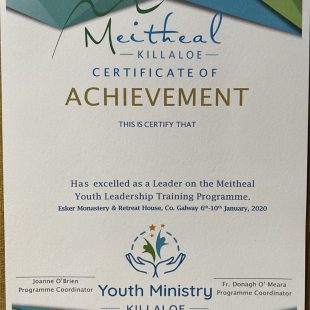 Congratulations to all involved in the first diocesan “Meitheal” Youth Ministry Training in Esker. 40 TY students were trained as youth ministers by 18 third level students from the diocese who had done work in that area over the years. Many thanks to director of youth ministry Ms. Joanne O’Brien and Fr. Donagh O’Meara, the youth ministry team of Limerick diocese and all who were involved in this very worth while and innovative project.