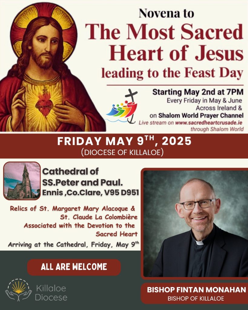 Speaking ahead of the Novena, Bishop Fintan Monahan offered this invitation saying, “All are welcome, as we pray this special novena together – especially in this Jubilee Year, a time of grace and renewal. The Sacred Heart of Jesus burns with love for each of us. As we lift our prayers together, let us entrust our hopes, wounds, and needs to His Heart, full of mercy and peace.”