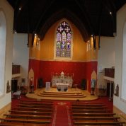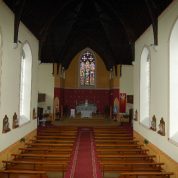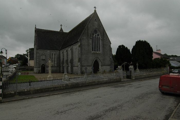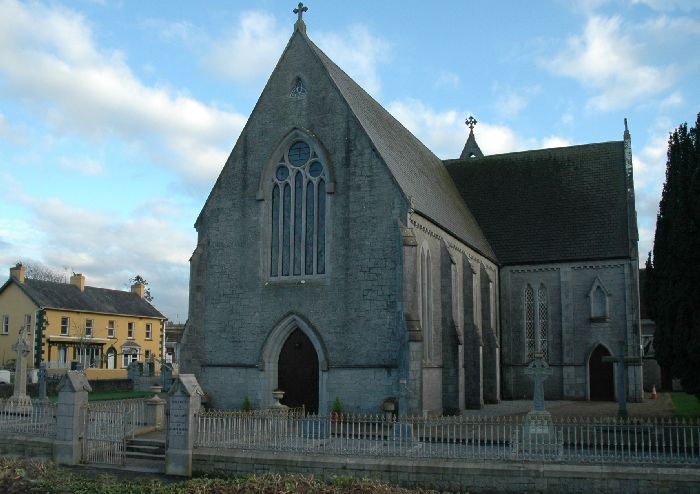 A mass house had been situated not far from the centre of the village at Chapel Hill but by the 1840s it was in a neglected and dilapidated condition. The parish priest at the time was Fr. Pat Hennesy. He took on the mammoth task of building a new church a mere ten years after the Great Famine. It was a massive undertaking but he did it with indomitable zeal and the new church was consecrated on the 9th of August 1863. When first percieved it was a most impressive sight, towering over the village scene, dwarfing even the most imposing buildings and business houses around it. With its flawless stonework, its beautifully executed Gothic arches and the sheerness of the high pitched slated roof – this splendid edifice, strong in stone and tasteful in design, was to be a symbol of the faith of a people.