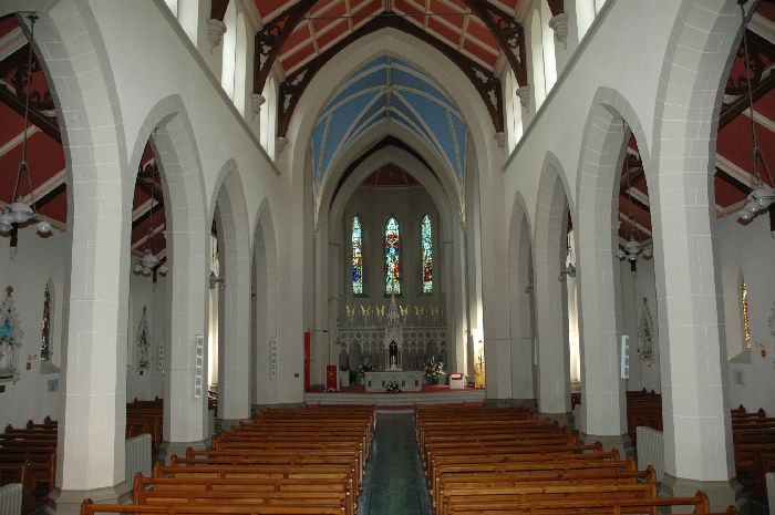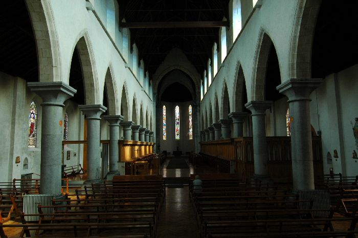 The present St. Cronan’s Church replaces much smaller and inadequate middle sized church buildings of the 18th & 19th century. As early as 1843 parish priest, Fr. Blake, had begun to build a replacement church, the present St. Cronan’s which was designed by the well-known architect, William Deane Butler. In 1846 the onset of famine caused the project to be shelved, and it was resumed only in the early 1850s when the building fund was replenished by a hugely successful fundraising tour undertaken in the United States by the Borrisokane curate, Fr. Bugler. The Church was dedicated in 1855, and its interior decoration was completed later to a design by J. J. McCarthy. The stained glass windows in the church are by Mayer of Munich and Early of Dublin. The church as finally consecrated by Bishop Rodgers in 1957. The stained glass windows in the church are by Mayer of Munich and Early of Dublin. In 1975 the sanctuary was re-ordered in line with the requirements of the Second Vatican Council, in a sensitive arrangement by Percy Leclerc that preserved the harmony of this beautiful church. The church was completely refurbished in 2011.
