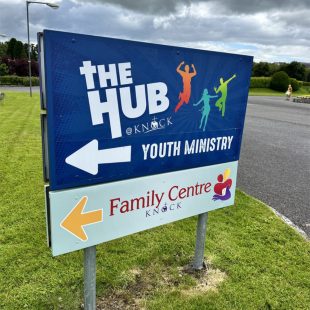 When one contemplates the magnificent mosaic of the apparition behind us in the sanctuary here in Knock the sacred events are relayed or mirrored each side in threes.
