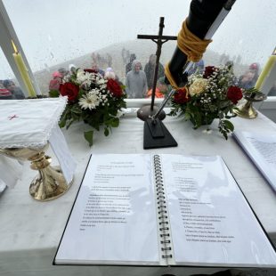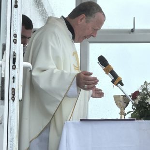 On Reek Sunday every year we follow in the footsteps of Saint Patrick, and of our ancestors who have climbed this holy mountain since the dawn of Christianity.  Croagh Patrick, represents the rock from which we, the people of Ireland were hewn.  Today’s pilgrimage links our past, present and future and it continues to nurture the spiritual memory and identity of this country.  It is particularly special to celebrate the Eucharist here on top of Croagh Patrick, because the Mass is our greatest act of Christian remembering.  It makes present, here and now, the Paschal Mysteries of Christ’s suffering, death and resurrection. Jesus said: “Do this in memory of me”.