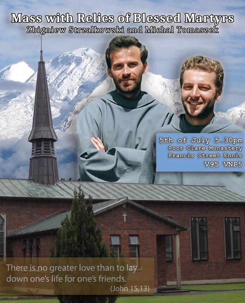 Bishop Fintan Monahan will celebrate mass in honour of Blessed Zbigniew Strzalkowski and Michal Tomaszek at the Poor Clare Chapel on Friday 5th of July, 2024.