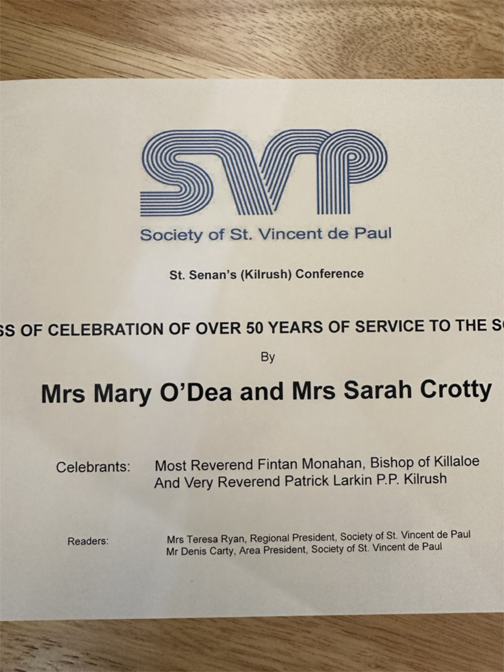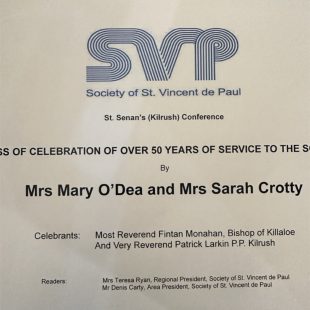 Thank you, Mary and Sarah, for being at the heart of St. Senan’s St. Vincent De Paul Society.
