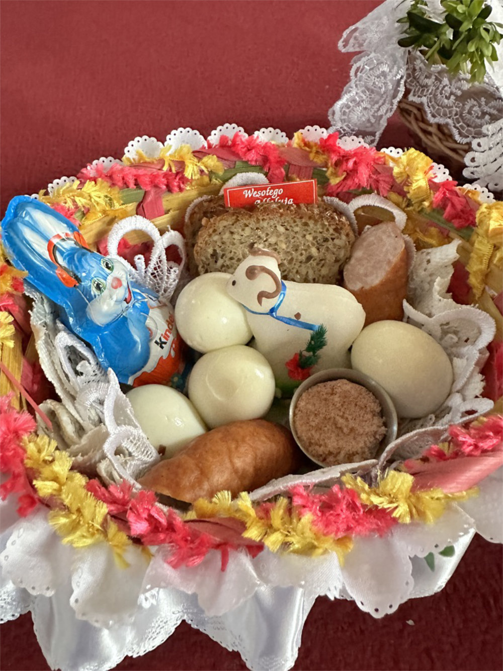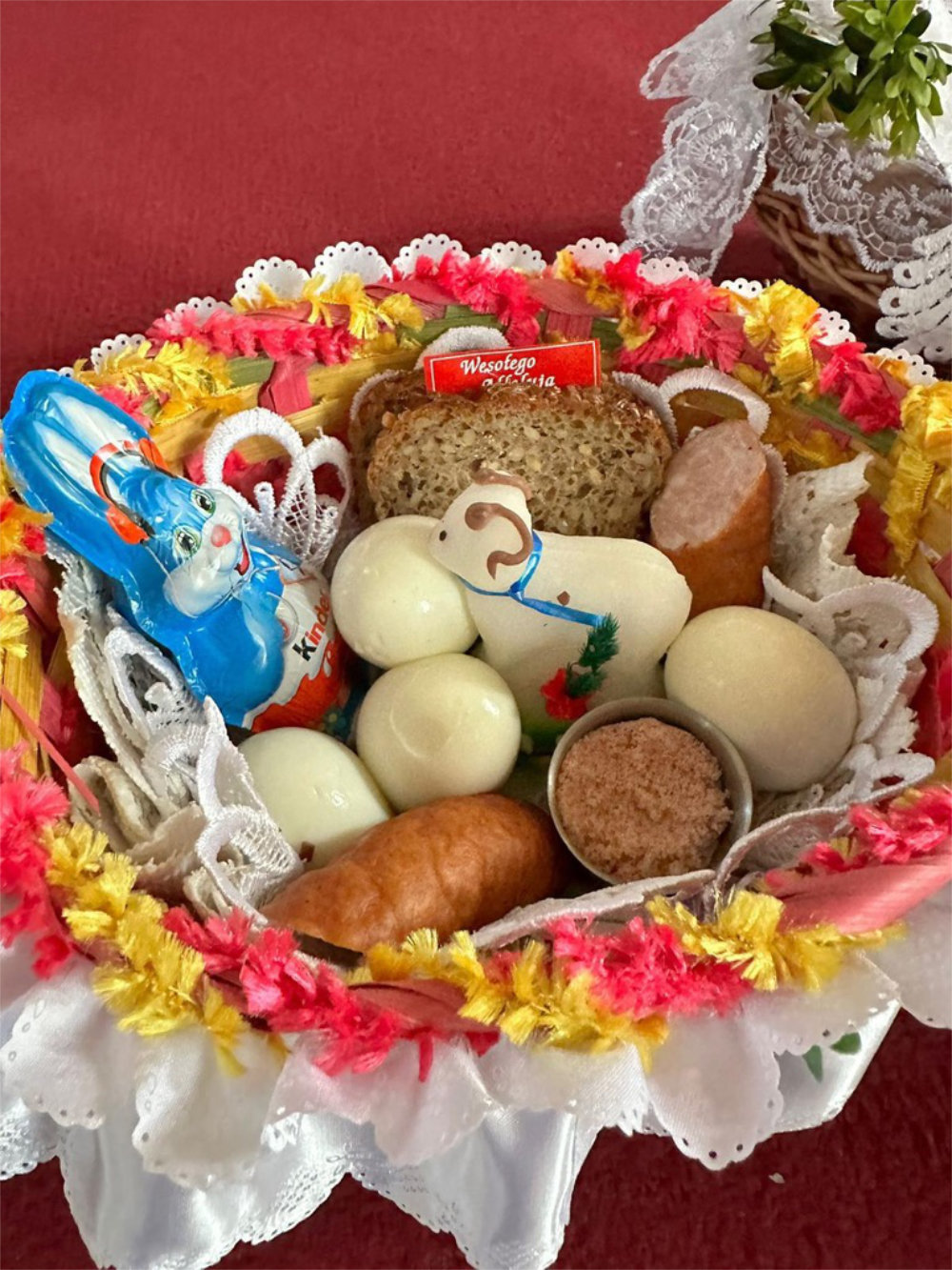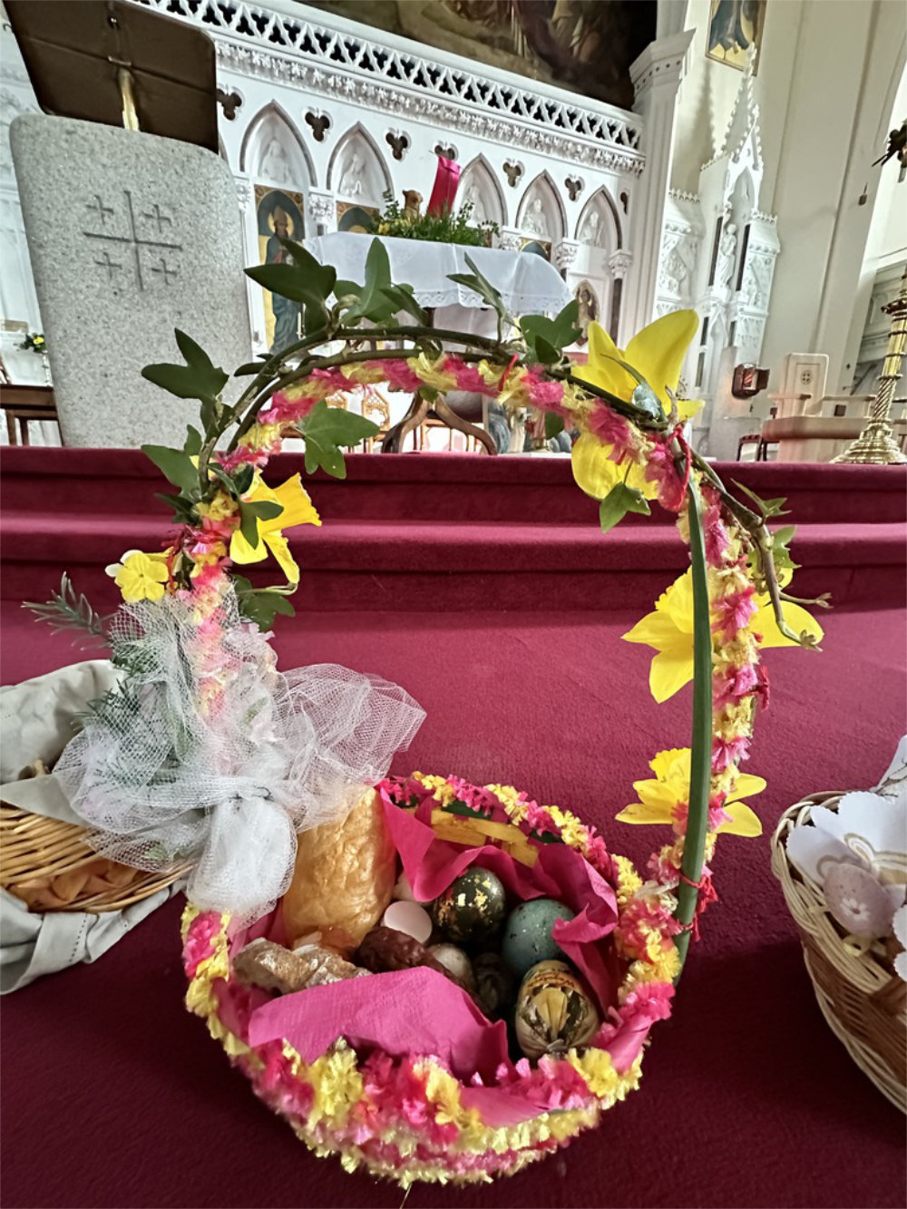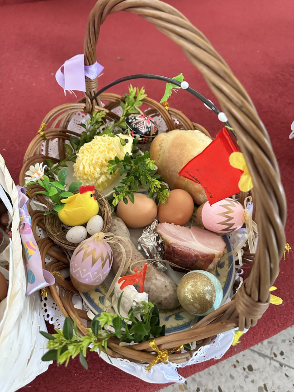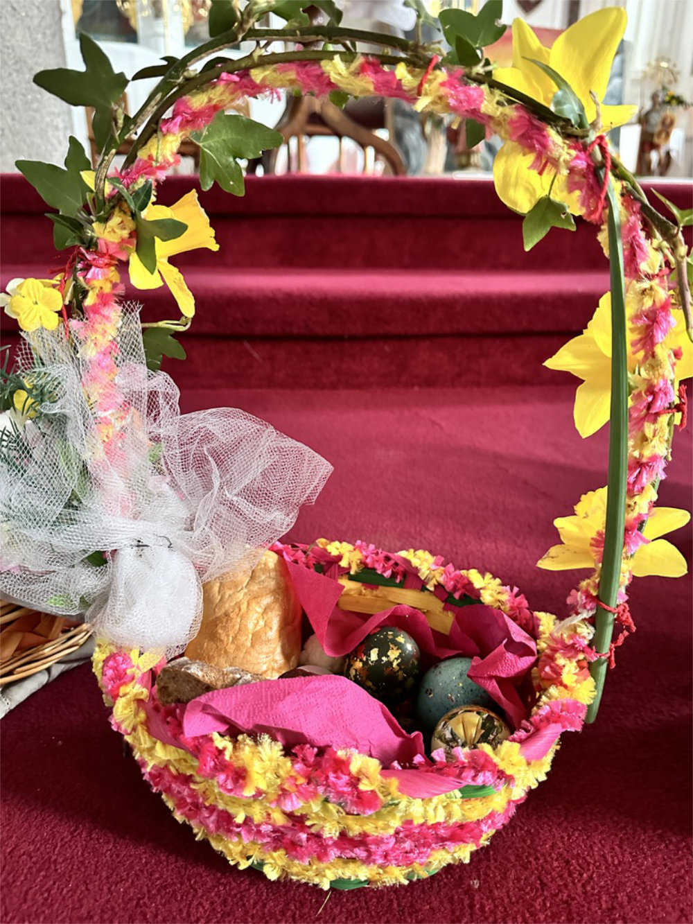 church to be blessed on Holy Saturday. The basket is traditionally lined with a