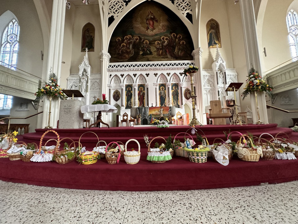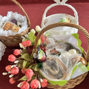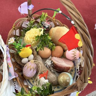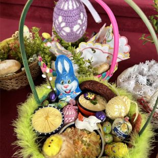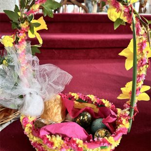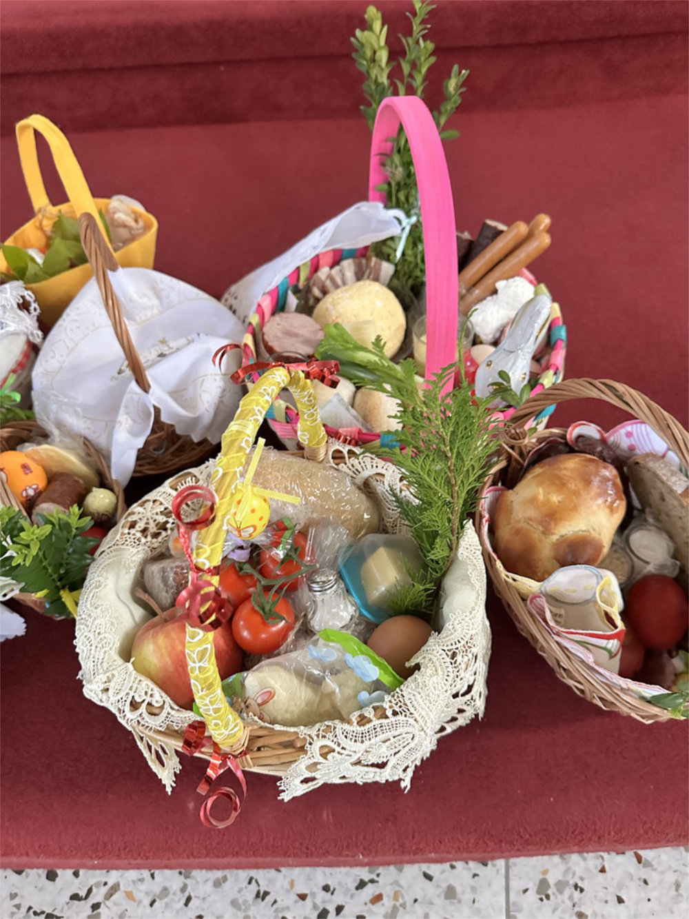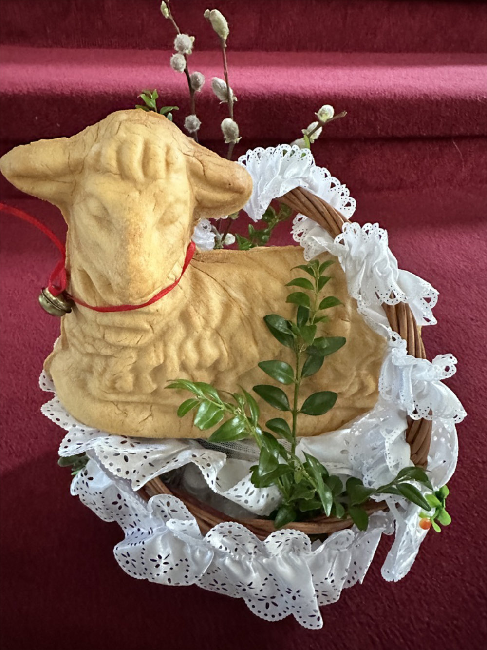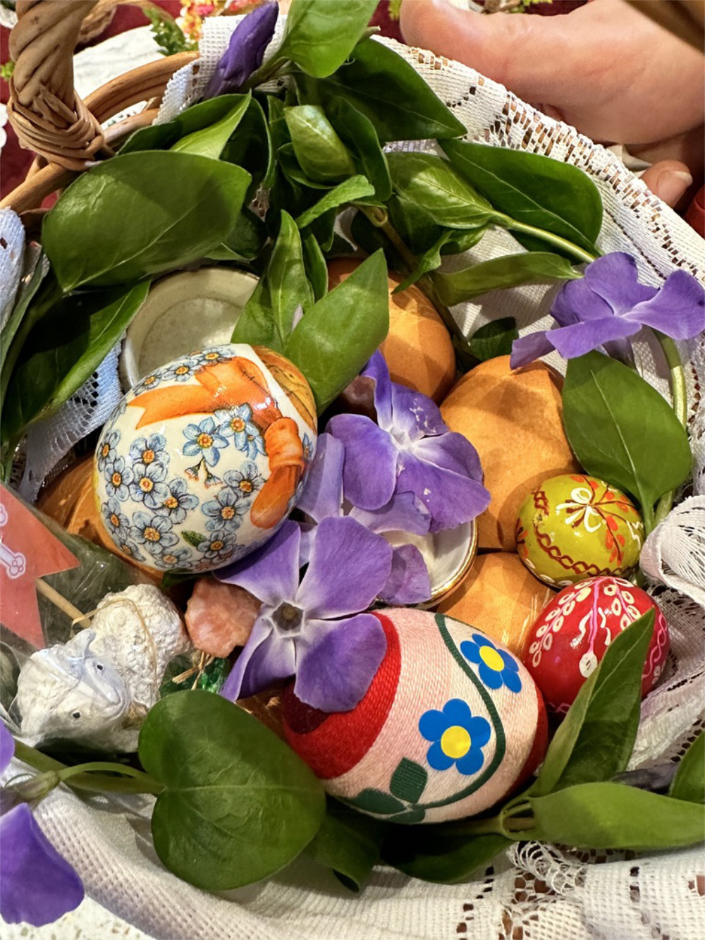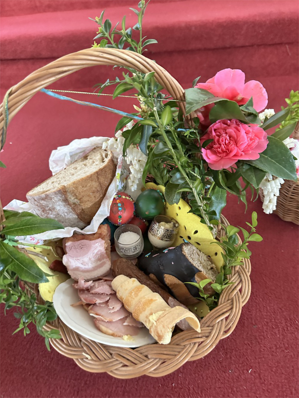 church to be blessed on Holy Saturday. The basket is traditionally lined with a