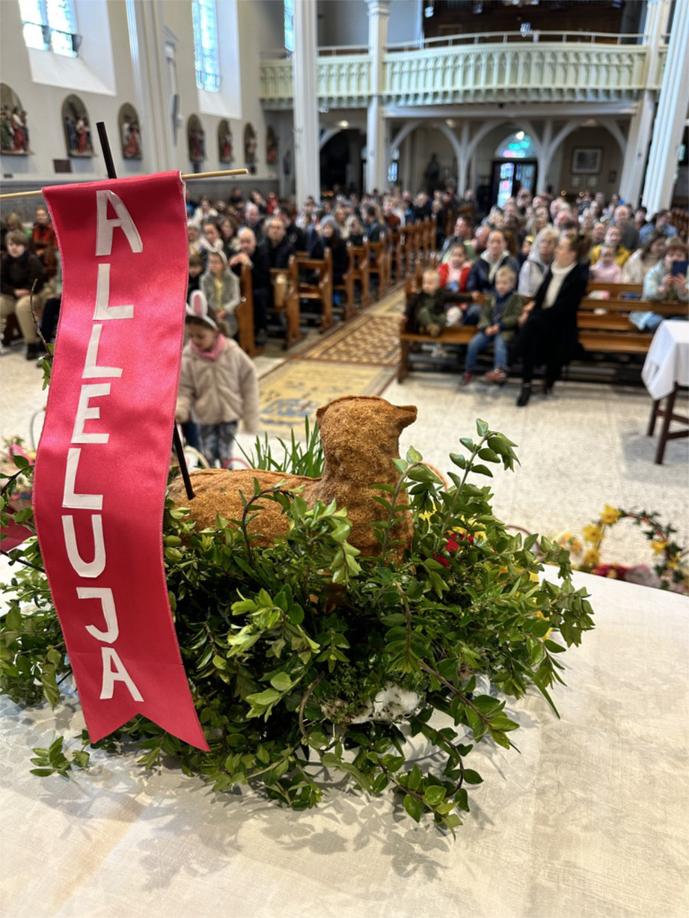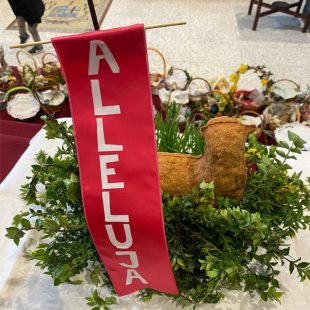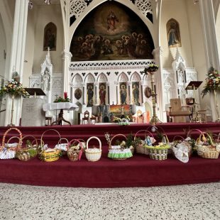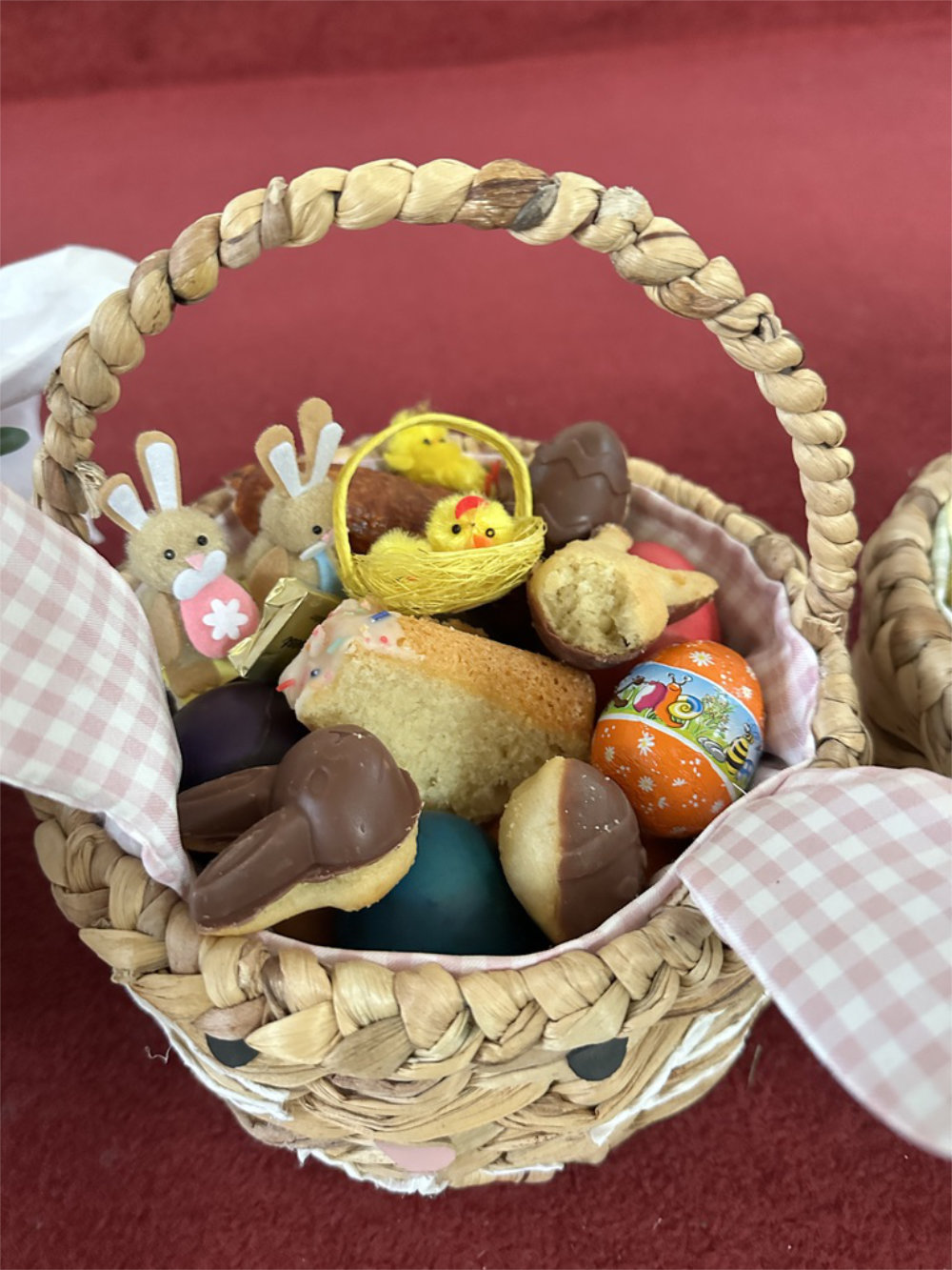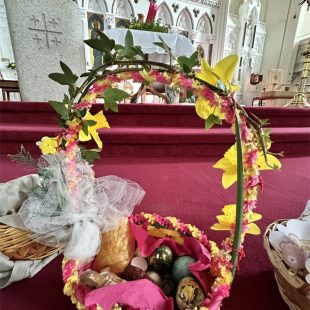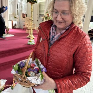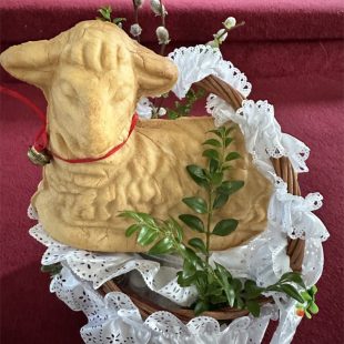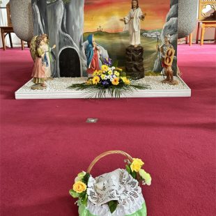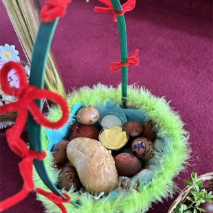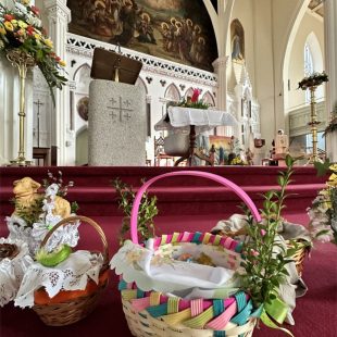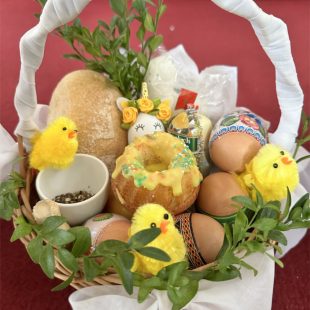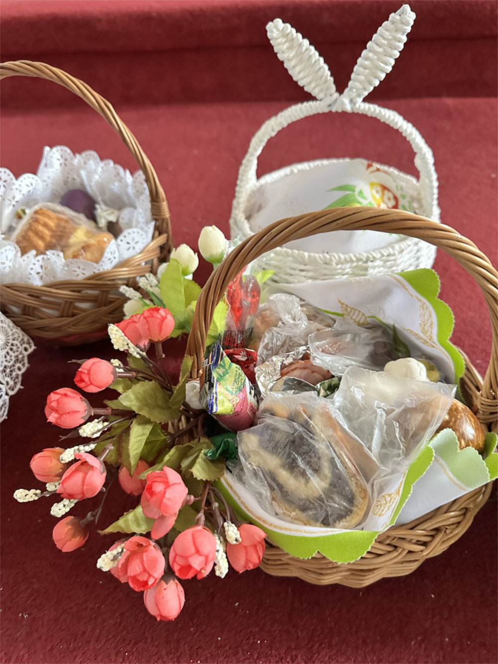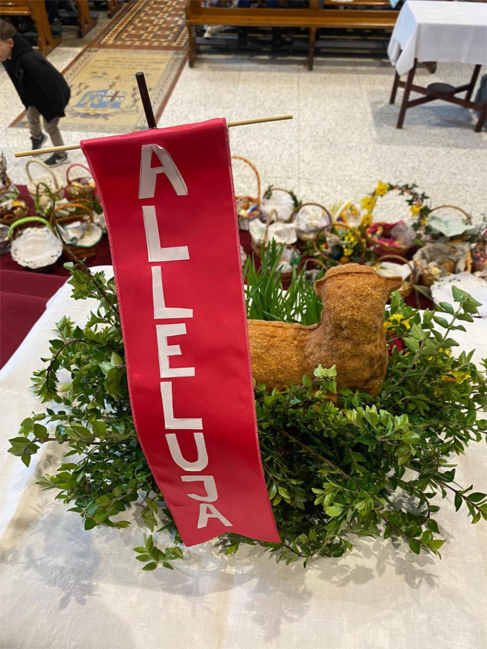 church to be blessed on Holy Saturday. The basket is traditionally lined with a