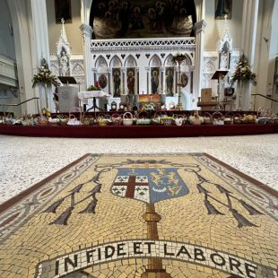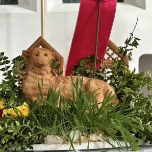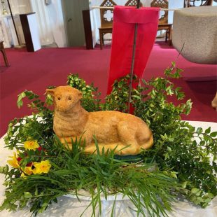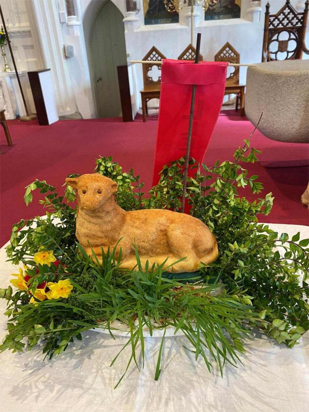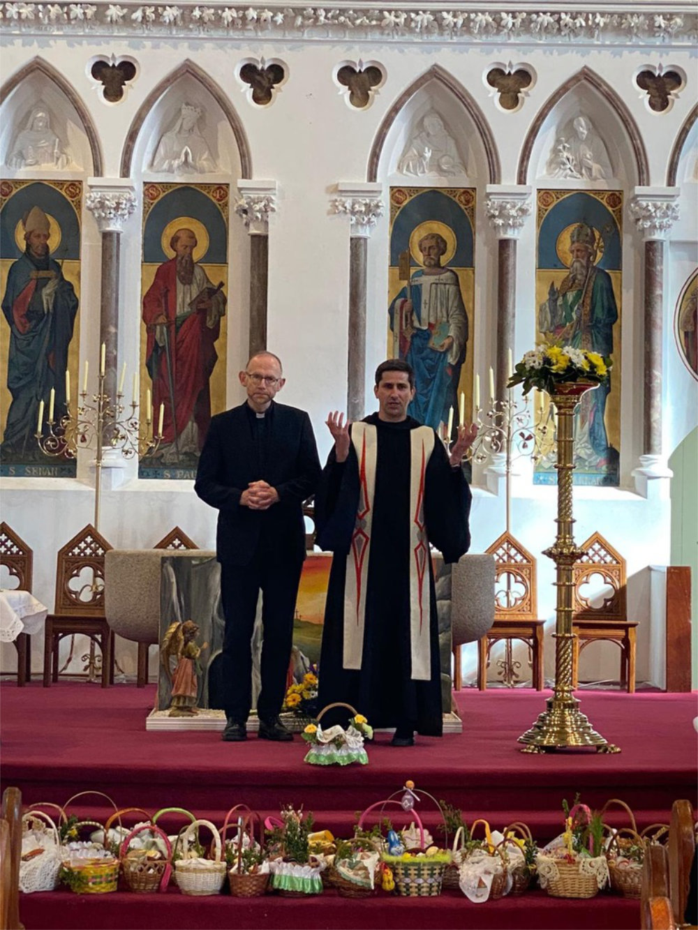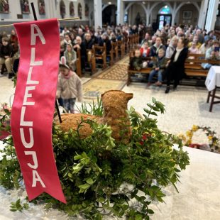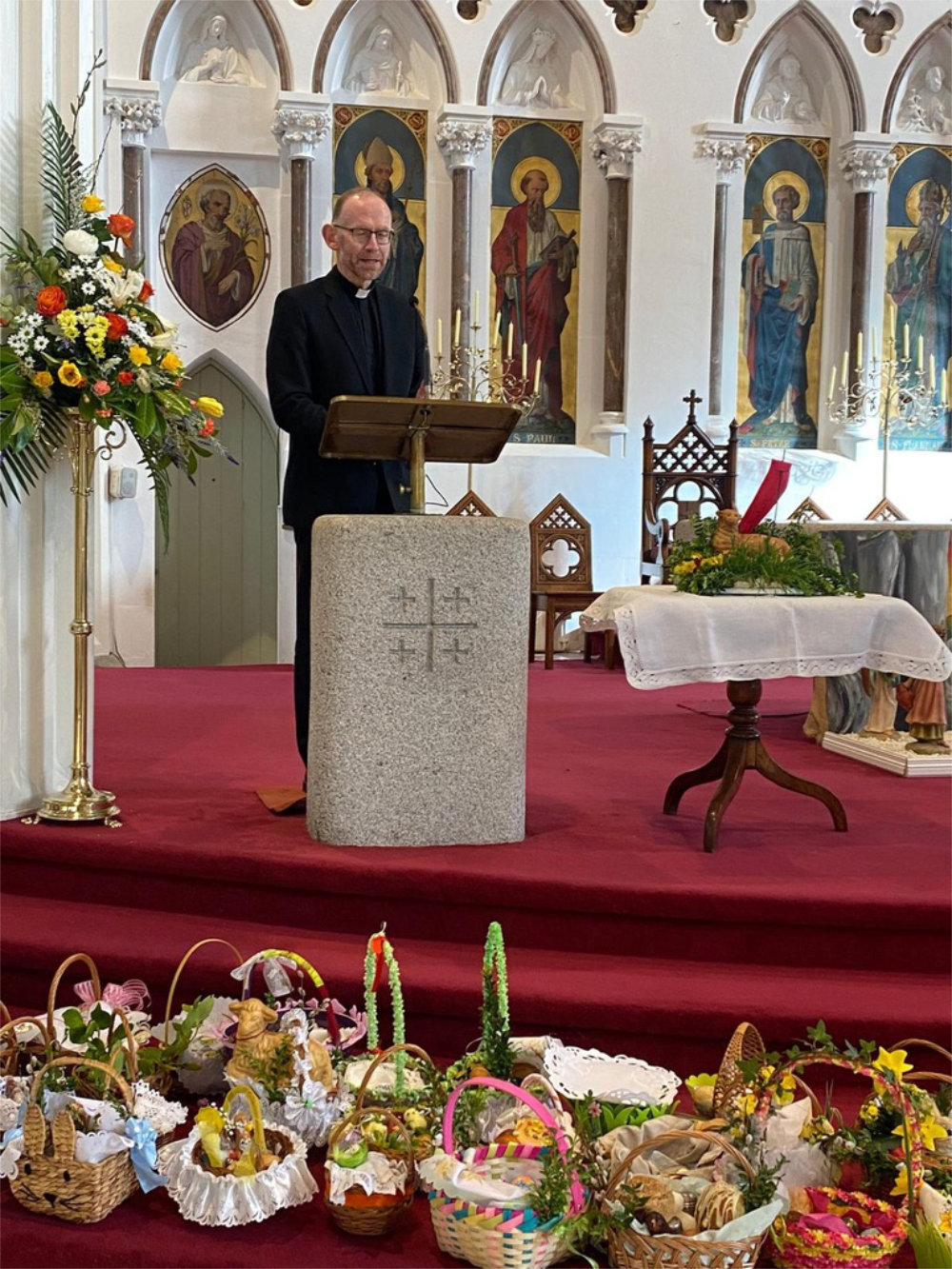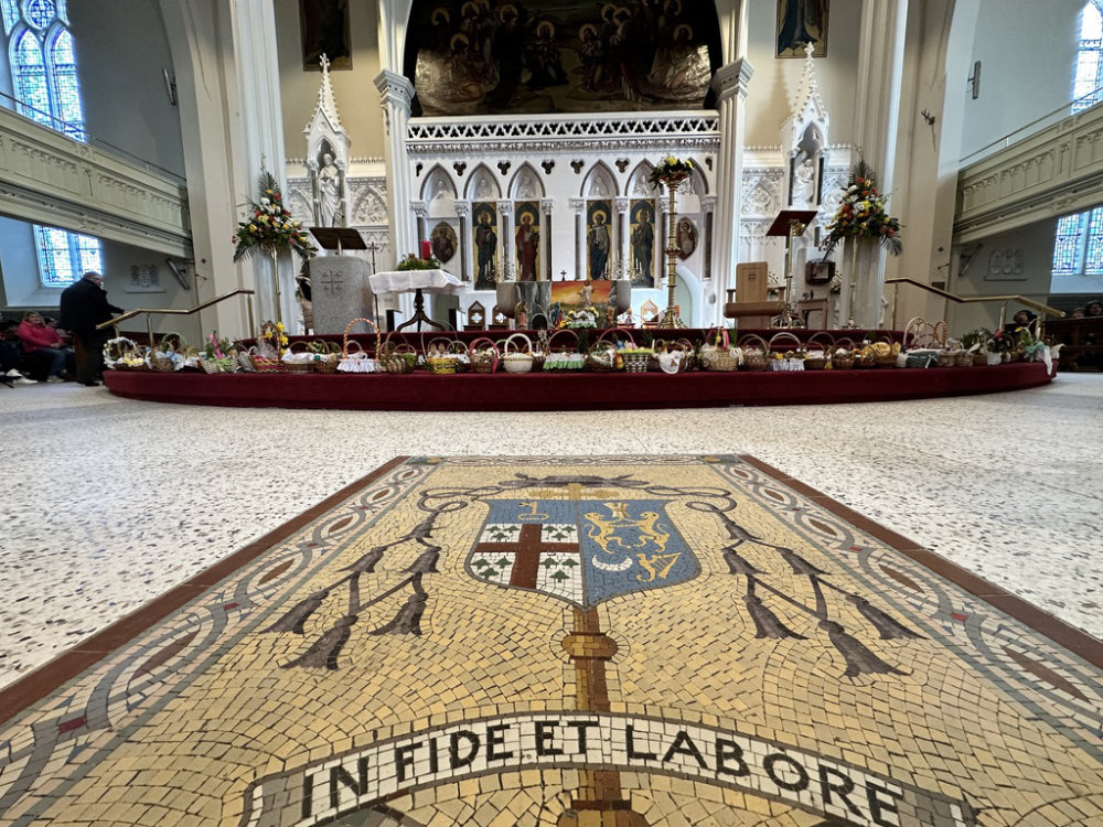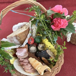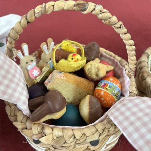 church to be blessed on Holy Saturday. The basket is traditionally lined with a
