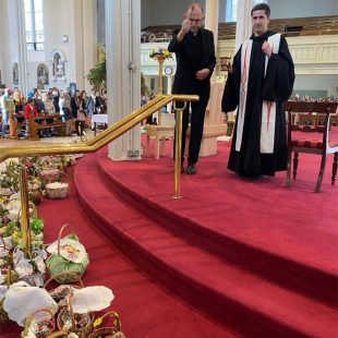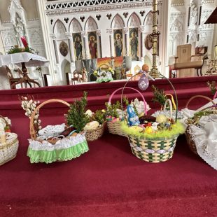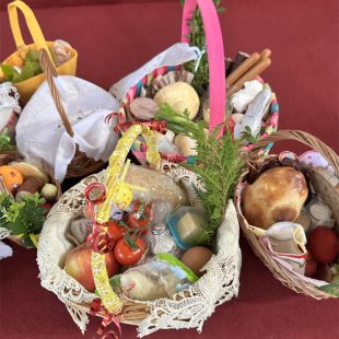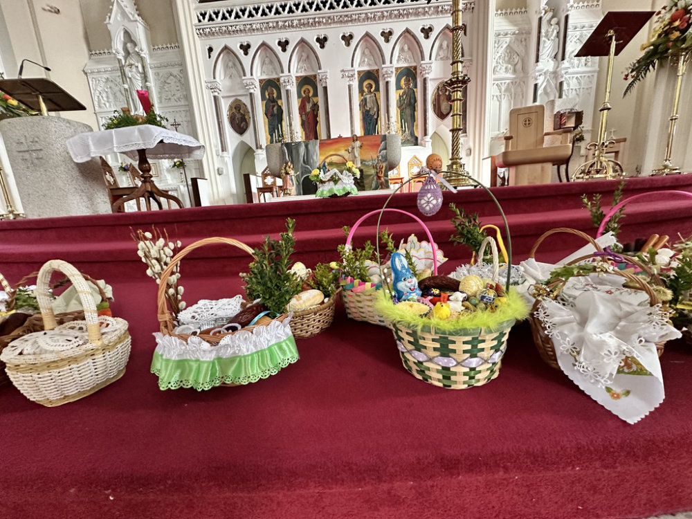 Polish traditions. Baskets containing a sampling of Easter foods are brought to