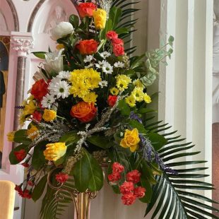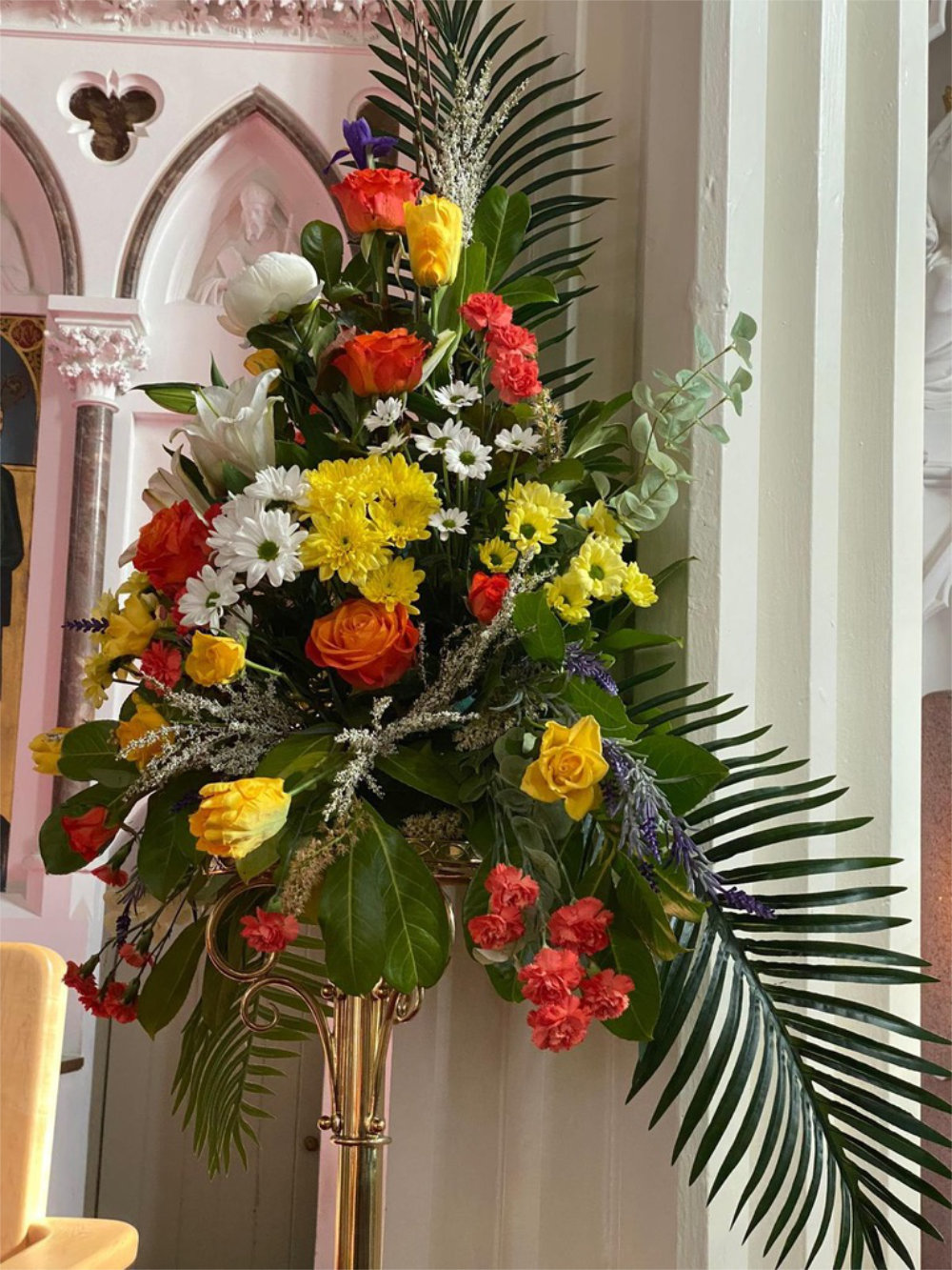 occasion, and just enough boxwood and ribbon woven through the handle.