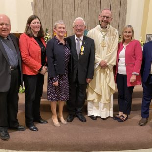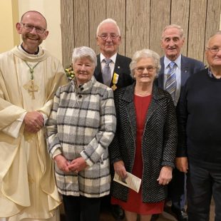 They say good things are best when they come in threes. To honour that the 3rd celebration of the evening is the presentation of a Bene Merenti Medal to Mr. John Joe Bukley for outstanding service here in the parish, dating back all the way, without a break to the time of the renovation in 1970.